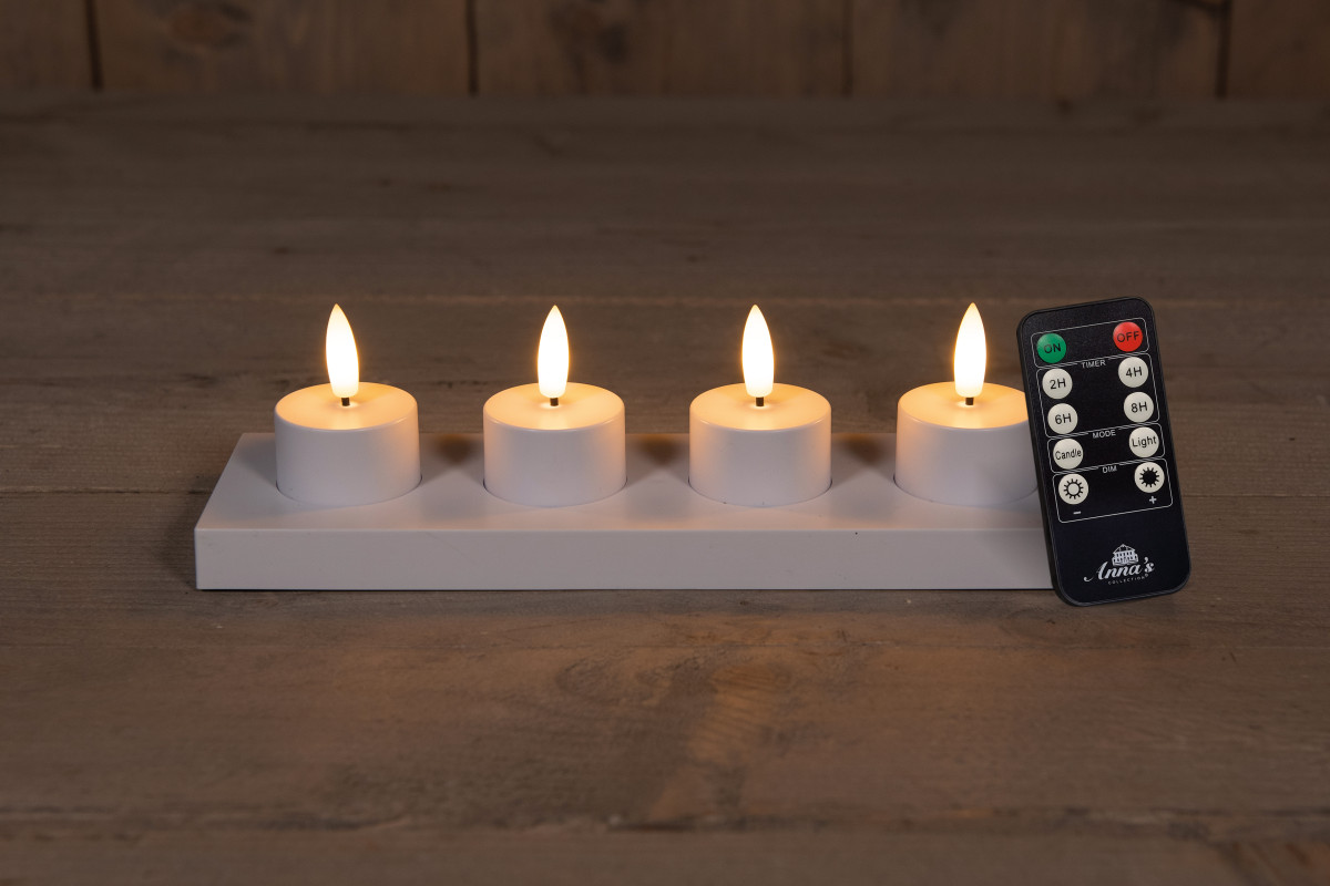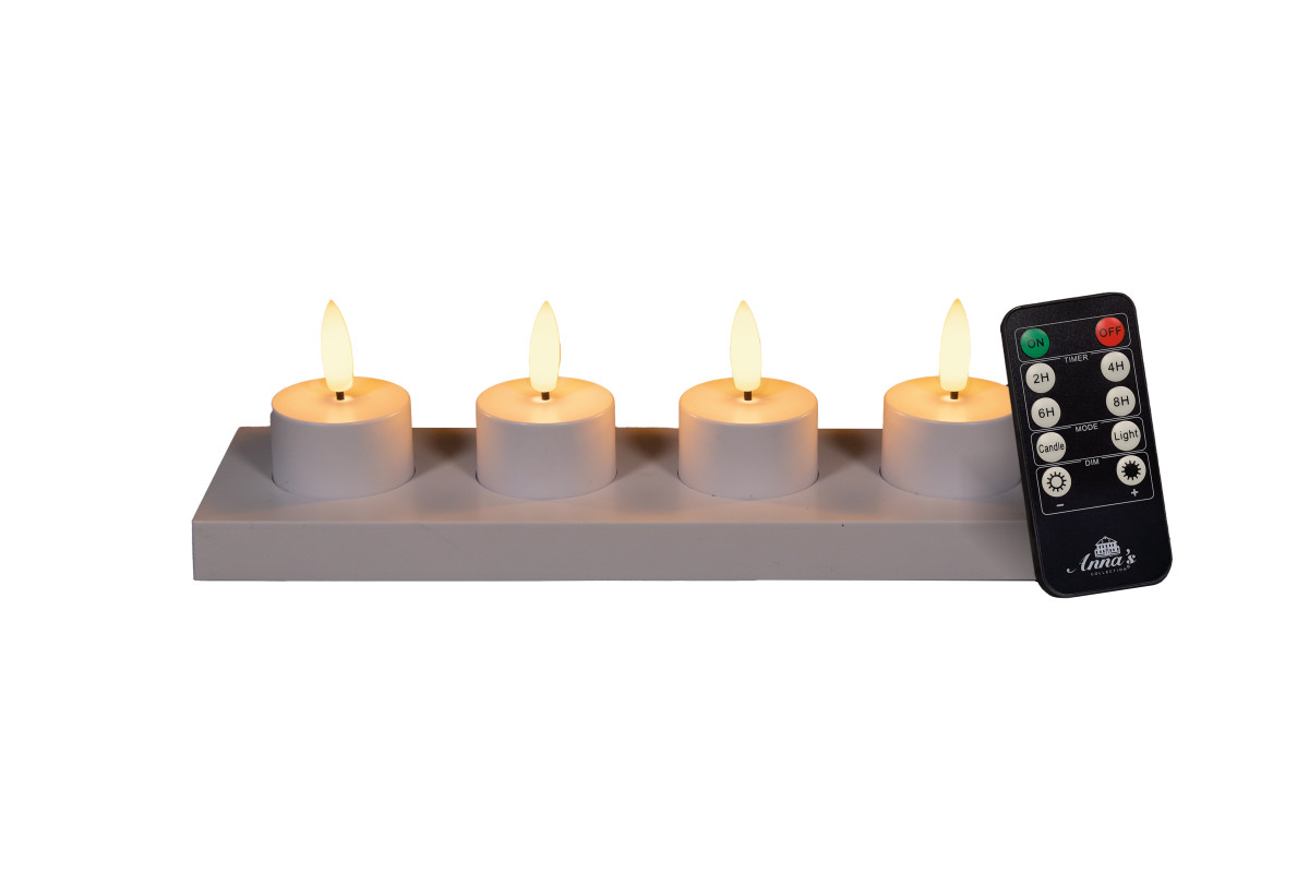 Anna’s Collection oplaadbare waxinelicht met oplaadstation wit – 4 stuks