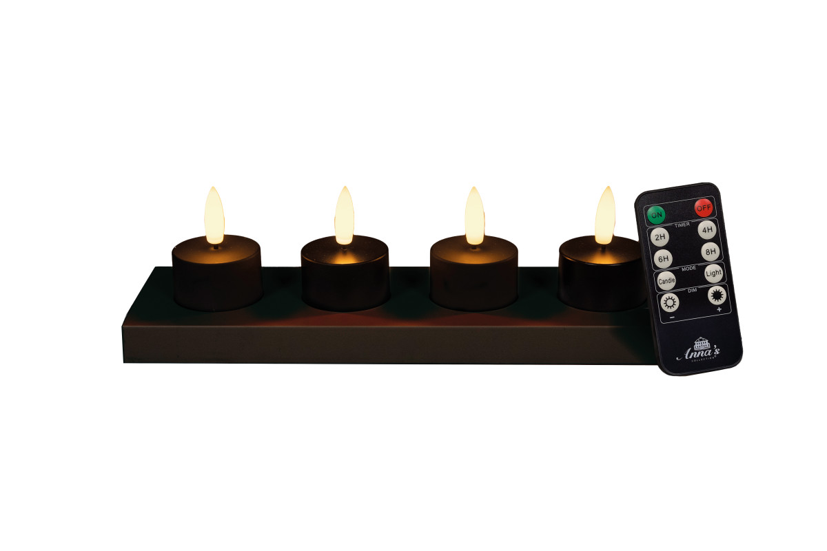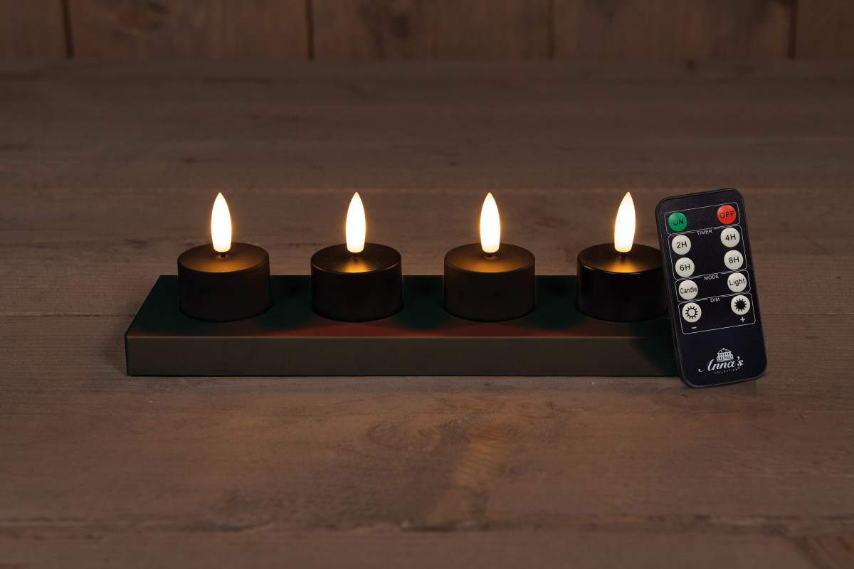Anna’s Collection oplaadbare waxinelicht met oplaadstation zwart – 4 stuks